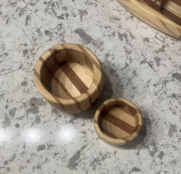 Compact and versatile, this wooden bowl is perfect for condiments, dipping sauces, or single-serve snacks. A charming addition to any table setting. Fits in deep wooden bowl.